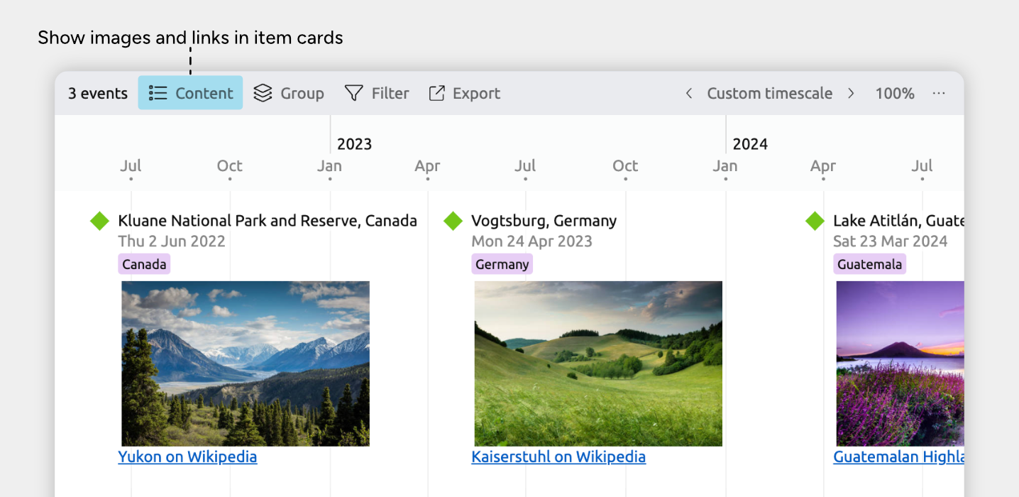 Aeon Timeline lets you attach links, files, and images directly to your events and items, so everything stays connected and easy to find.