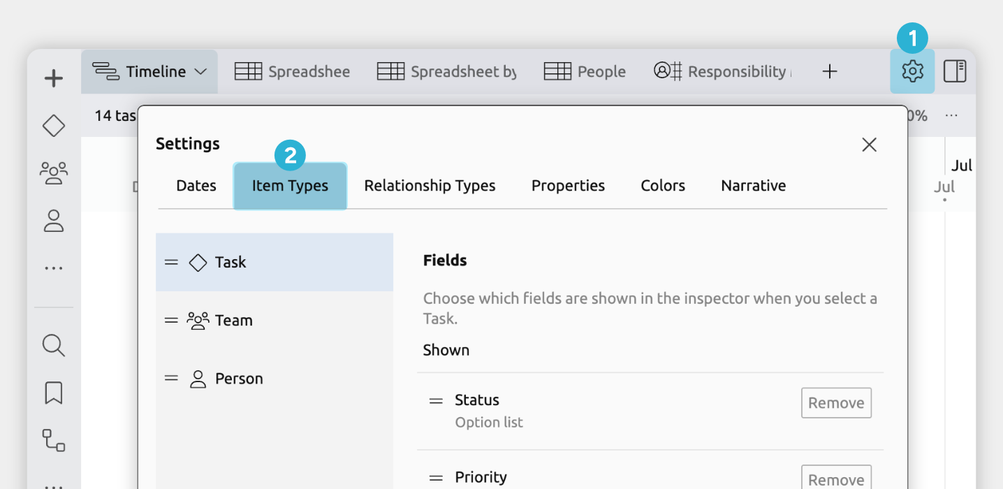 Note: Most views, such as the Timeline or Spreadsheet view, still let you choose which item types are shown on a view-by-view basis.